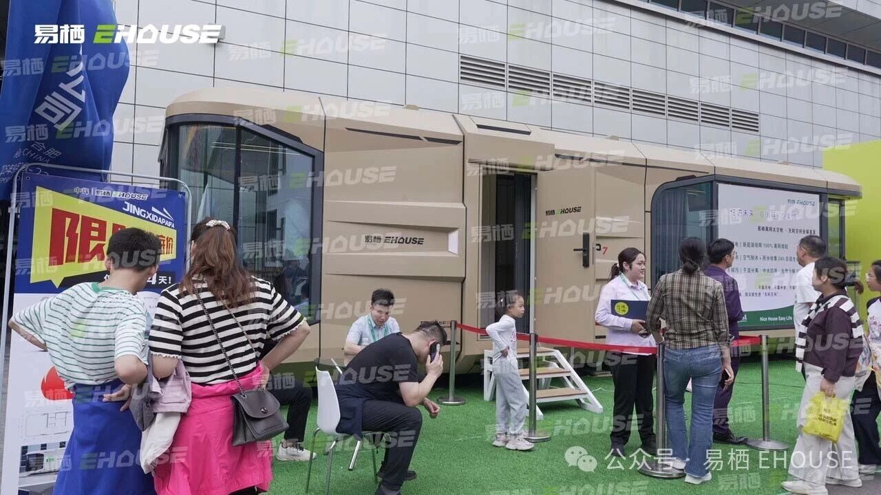 绿色低碳实践:易栖展台特别展示了其采用的轻钢结构、环保复合板材及光伏一体化屋面技术,以实际案例诠释“绿色智造”理念,响应制造业碳中和目标。